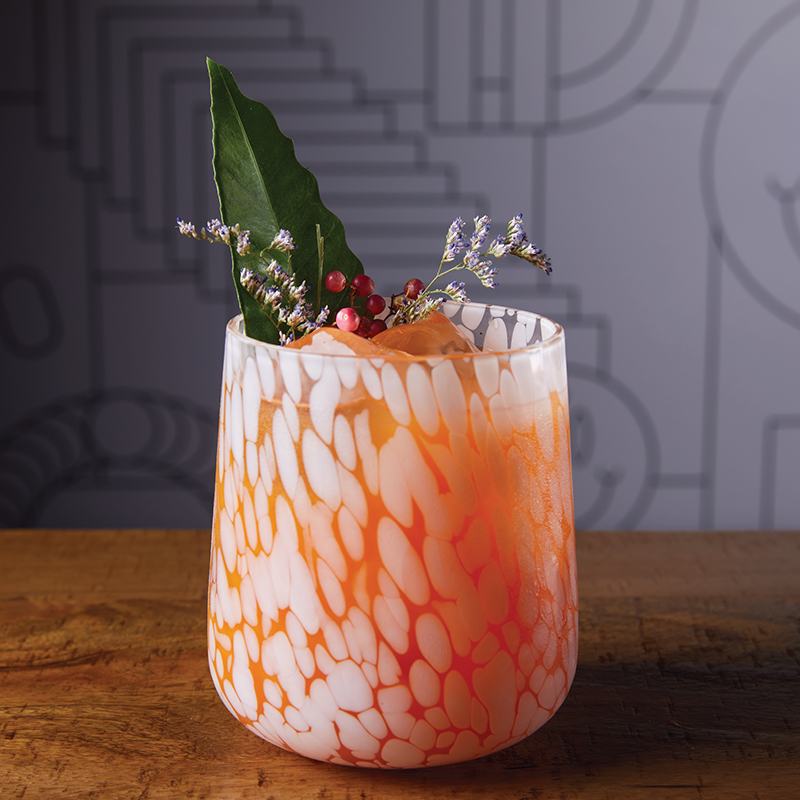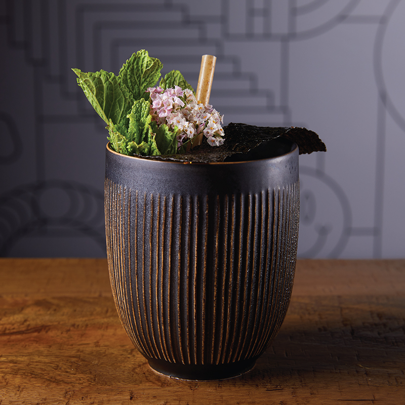 Vermut, sake, bitter blanco, té de rosa y vainilla.