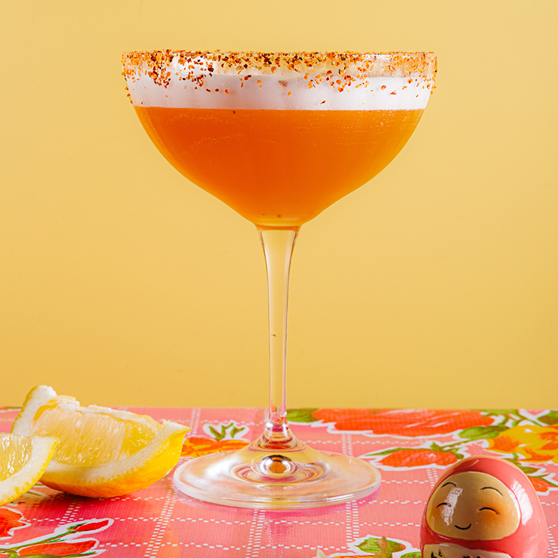 Fruta de la pasión, zanahoria, mostaza, lima, agave, tequila.