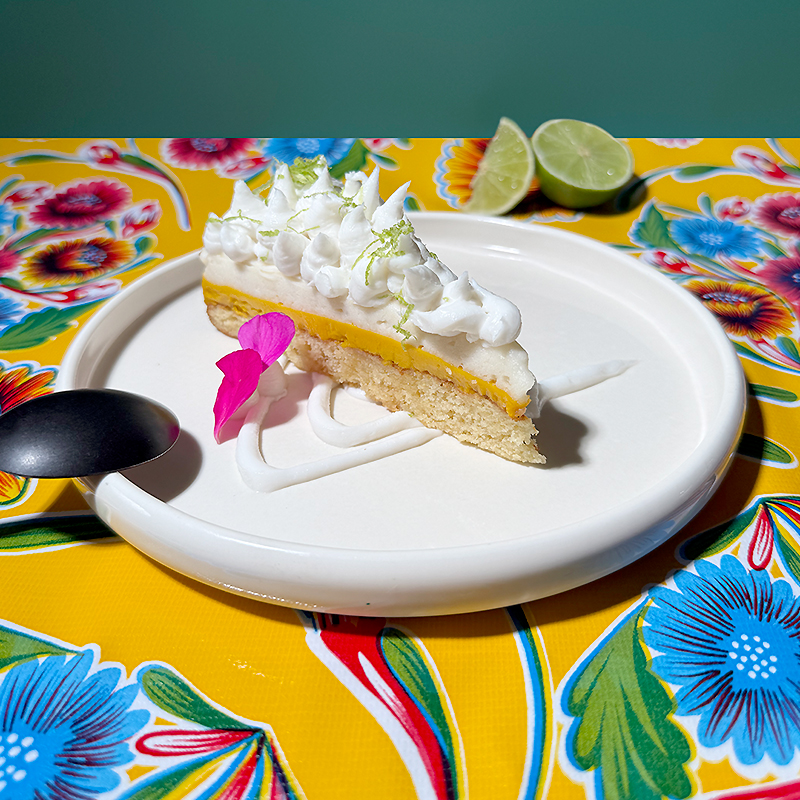 Bizcocho esponjoso de mandarina, mousse cremosa de yuzu, mango y coco. Un equilibrio fresco y exótico de sabores cítricos y frutas tropicales.